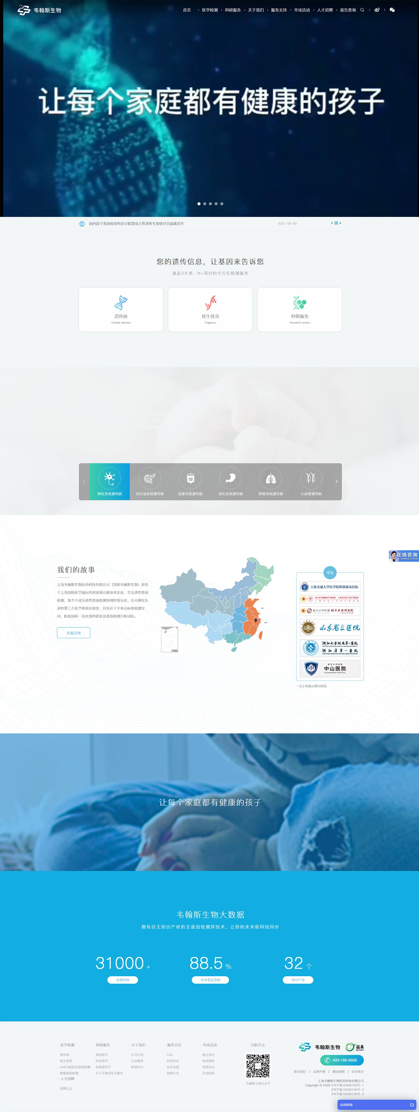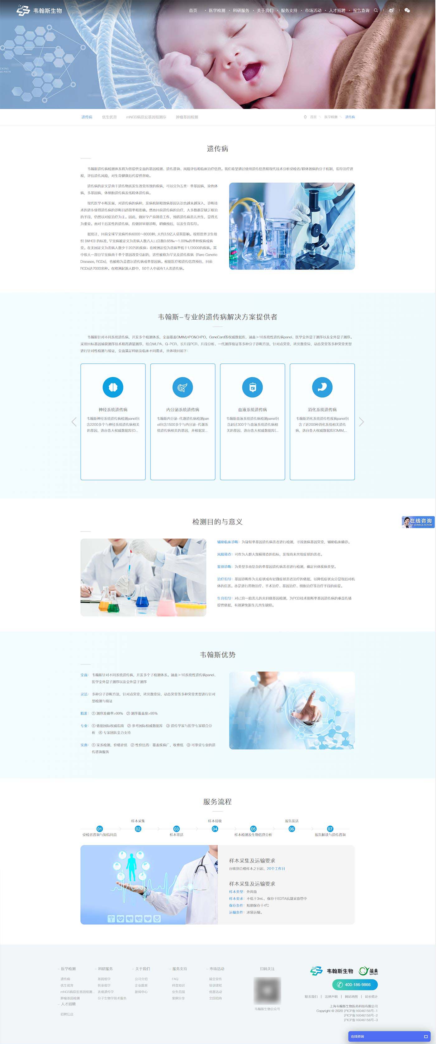 公司總部位于上海國際醫學園區,旗下擁有獨立第三方醫學檢驗實驗室(LDT/上海)、IVD(基因檢測試劑盒及設備)及POCT生產基地(設備及配套檢測試劑);業務涵蓋遺傳病篩查(三級預防)、遺傳病輔助診斷、不孕不育與流產物檢測、輔助生殖類(PGT)檢測、親緣關系檢測及遺傳病方向科研合作等;與數百家業內頂級醫療機構及專家建立牢固合作關系。